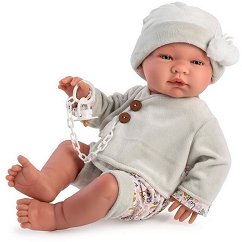 Куклата бебе Пабло от "Asi" е с височина 43 cm. За направата ѝ е вложен ръчен труд, като са използвани нетоксични материали с най-високо качество. За тялото на бебето е използван приятен на допир винил. Куклата ще ви впечатли с изключително изразителните и пленителни черти, които я правят съвършена, почти като истинско бебе. Производителят на куклата е положил много усилия и в създаването на тоалет за куклата бебе, така че той да отговаря на Пабло, който сам по себе си е съвършен. Той е облечен в сива жилетка и къси панталонки на цветчета, а на главата си има сива шапка с помпони. Освен това куклата държи ... |