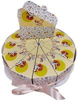 Детският рожден ден или празник няма да е същият без торта. Но в същото време не винаги е удачно за празненството да се направи истинската версия на вкусния сладиш. В тези моменти картонената торта е изключително добра алтернатива. Тя се състои от 12 кутийки с формата на парче от торта, които могат да се напълнят със сладки изкушения и малки изненади за твоето дете и неговите приятели. Тортата пристига разглобена. За да я сглобиш просто ще трябва да сгънеш предварително подготвените разгъвки за парчета торта, без да са ти необходими каквито и да е инструменти или лепило. Освен това в комплекта е включена панделка. ... |
