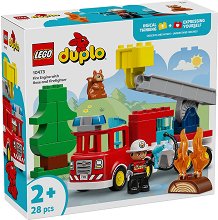 Конструкторът е част от серията LEGO Duplo, където може да намерите още интересни комплекти. ... Конструкторът на LEGO ще осигури вълнуваща игра за малките деца. Този цветен и интерактивен комплект от 28 части позволява на децата да се потопят в света на смелите пожарникари и да разиграват спасителни мисии. Пожарната кола е оборудвана с гъвкав маркуч, подвижна стълба и прозрачен резервоар за вода, които вдъхновяват ролеви игри и творческо разказване на истории. В комплекта са включени също фигура на пожарникар, дърво, запален дънер и симпатична катеричка, която наблюдава действието. Играта подпомага развитието на ... |