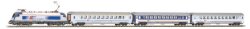 Умален модел на пътнически влак с електрически локомотив BR 185, обслужващ холандските железници (NS). Комплектът се състои от локомотив, 2 двуетажни вагона и релси, с които се изгражда овално трасе. Характеристики: приблизителни размери на основната площ - 158 x 88 cm минимална площ за разполагане на сглобения комплект - 168 x 98 cm железопътна администрация - NS А-релсов път с баласт захранване - прав ток (DC) дължина на влаковата композиция - 753 mm навигационен радиус - 358 mm декодер - 8 Pin Ready цифров интерфейс - NEM 652 съединител - NEM период - VI ... |