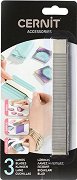 Инструментите за моделиране от "Cernit" са изработени от неръждаема стомана, което не позволява на обработвания материал да се полепи по тях. Те са изключително остри, не раздробяват глината. Подходящи са за работа с полимерна глина, глина и моделин. В комплекта са включени 3 остриета с ширина 1.8 cm и дължина 14 cm. ... |