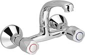 Двуръкохватков смесител за кухня Iskar B1393AA на Vidima е предназначен за стенен монтаж. Има въртящ се горен тръбен чучур с U-образна лебедка с дължина 20 cm. Притежава каучукови затварящи механизми G1/2" и аератор тип Perlator. ... |