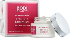 Кремът Bille-RB Rich Night Cream е подходящ за суха, мазна и комбинирана кожа, включително зряла, както и кожа с пигментации, неравен тен и склонност към акне. ... Нощният крем с ретинол и бакучиол на Bodi Beauty от серията Bille-RB е създаден за интензивна анти-ейдж грижа и възстановяване. Комбинацията от активни съставки изглажда фините линии, подобрява еластичността и възвръща естествения блясък на кожата. Богатата му текстура подхранва в дълбочина, без да предизвиква дразнене, и оставя кожата отпочинала и озарена на сутринта. Отличителни активни съставки в нощния крем Bodi Beauty Bille-RB: бакучиол – ... |