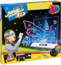 Благодарение на комплекта вашето дете ще може да развива творческите си умения по един забавен начин. Той съдържа дъска за рисуване, шаблони с морски обитатели, 3D очила, 4 флумастера, кърпа за почистване и поставка с вграден LED модул. Преди да започне да рисува, детето трябва да си избере шаблон, който да постави на прозрачната основа. След като приключи с рисуването, може да сложи 3D очилата и да включи LED модула, за да види как картината оживява. Размерите на дъската са 24 x 19 cm. LED модулът работи с 4 батерии AAA, които може да закупите отделно. ... |