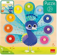 Малчуганите ще научат цветовете с пъзела от Goula. Той включва 9 части и е изработен от дърво. Децата могат да подредят кръглите цветни части върху перата на пауна като ги свържат по цветове. По този начин те могат да подобрят своята фина моторика и координация око-ръка, докато се забавляват. Приблизителните размери на пъзела са 28 / 28 / 2.5 cm. ... |