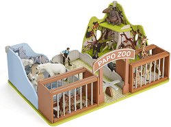 Зоопаркът на "Паполандия" отваря врати за посетители. Всички искат да видят "жителите" на зоопарка. Полярните мечки се забавляват в басейна, докато маймуните правят шоу в тяхната клетка. Дивите животни - тигри и жирафи, чакат търпеливо да ги нахранят. Вратите на клетките на дивите животни се отварят. Фигурите на животни не са включени в комплекта. ...