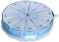 Детският рожден ден или празник няма да е същият без торта. Но в същото време не винаги е удачно за празненството да сте направили истинската версия на вкусния сладиш. В тези моменти картонената торта е изключително добра алтернатива. Тя се състои от 12 кутийки с формата на парче от торта, които могат да се напълнят със сладки изкушения и малки изненади за твоето дете и неговите приятели. Тортата пристига разглобена. За да я сглобиш просто ще трябва да сгънеш предварително подготвените разгъвки за парчета торта, без да са ти необходими каквито и да е инструменти или лепило. Освен това в комплекта е включена панделка. ...