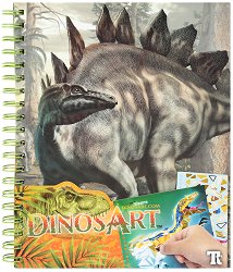 Тази книжка от DinosArt е различна от обикновените книжки за рисуване и оцветяване. Тя съдържа шаблони, моливи и стикери, с които детето ще може да рисува и оцветява и да създава многобройни пейзажи на любимите му динозаври. Комплектът съдържа: 40 скици на динозаври; 12 цветни молива; 200 стикера; шаблони. Книжката е с размери: 30 / 31.5 / 2.3 cm. ... |