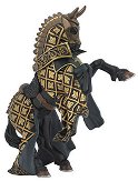 Две са нещата, на които Рицарят на Синия дракон разчита, когато тръгне на война - на своя силен дух и на верния си кон. Оръжията могат да се счупят, запасите - да свършат, дори съюзниците - и те могат да го подведат, но не и това благородно животно. На него кралят - рицар на Синия дракон, вярва както на себе си. Обучен специално за боен кон, този жребец не знае що е страх или непокорство. Избран сред множество себеподобни, заради гордата си осанка, бързина и възприемчивост, той с гордост носи на гърба си своя господар напред към непознатите земи. Там, където и двамата ги чакат още много битки и приключения. Фигурката на & ... |