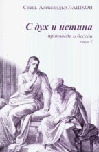 Книга първа от поредицата "С дух и истина" на издателство "Нов човек". ... Преди известно време Свещ. Александър Лашков се среща със семейство в нужда - съпругата е доста болна. Съпругът го посреща любезно и преди да го въведе в стаята на болната, му казва: "Не се съмнявам, че ще успеете да я ободрите и да ѝ вдъхнете воля за живот. Вие свещениците сте събрали и носите в себе си цялата мъдрост на Библията и знаете как да постъпвате в такива случаи." Макар че не го познавах, бях изненадан и поразен от думите на този мъж. Той (както сам ми каза) не беше особено религиозен, а какво високо ...