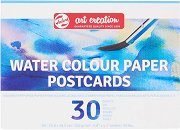 Акварелният блок от серията Art Creation на Royal Talens съдържа 30 пощенски картички, готови за рисуване, с размери 10.5 x 14.8 cm. Хартията може да понесе няколко измивания с вода и водна боя. Тя е достатъчно устойчива, за да се изпъстри с акварелни бои и тушове, акварелни моливи, темперни (гваш) бои или акрилни бои. Леката ѝ грапавина я прави подходяща и за сухи средства като молив, въглен и пастел. Друг, още по-достъпен начин за изрисуване на картичките е посредством тампон и печат или оцветяване през шаблон. На гърба на всеки лист има отпечатани редове за лесно надписване, както и място за ... |
