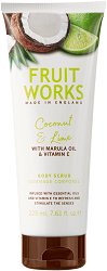 Скрабът от "Fruit Works" нежно ексфолира и почиства кожата, правейки я копринено мека, гладка и сияйна. Той притежава екзотичен и свеж аромат на кокос и лайм, който ще поглези сетивата ви. Грижовната формула съдържа активни съставки, които хидатират и подхранват кожата. След употреба, тялото е дълготрайно освежено и ароматизирано. Формулата е обогатена с масло от африканското дърво марула, което има доказани антиоксидантни, подмладяващи и овлажняващи свойства. То хидратира кожата и възстановява нейната еластичност. Вложен е витамин E, който действа регенериращо, противовъзпалително и подмладяващо. Той помага ... |