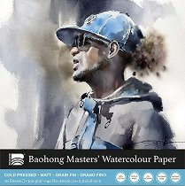 Професионалната хартия за рисуване с акварел от колекцията Masters choice на Baohong е изработена от 100% чист памук, горещо пресована (hot pressed) и със сатинирана повърхност. Произведена е без използване на оптични избелители, без киселина и с неутрално pH. Акварелната хартия има отлична абсорбция когато се използва за техники на мокро боядисване с четка или писалка, за създаване на ефекти с чист цвят върху мокра или суха повърхност. Хартията Masters choice е подходяща за рисуване с акварелни бои, моливи, гваш бои, акрилни бои и туш. Характеристики: цвят на хартията: бял повърхност: сатинирана, hot ... |