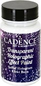 Ефектната акрилна боя от CADENCE е прозрачна боя на водна основа, която съдържа холографски люспи. Холограмният глитер е уникален, защото изглежда така, сякаш гледате калейдоскоп от цветове, които блещукат и искрят. Подходяща е за всякакви повърхности - платно, дърво, метал, бетон, стъкло, пластмаса и други смесени техники. Идеална е за вътрешна и външна употреба без да е необходима допълнителна лакова защита. Нанася се с четка, гъба или шаблон. След употреба инструментите се измиват обилно в топла сапунена вода. Съхне бързо. Не съдържа вредни за здравето токсични вещества. Съответства на стандартите CE и EN71. ... |