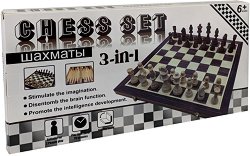 Класическият комплект 3 в 1 съчетава шах, дама и табла в елегантна дървена кутия с интарзия от иглолистна дървесина. Подходящ както за любители, така и за напреднали играчи, този комплект предлага традиционно игрово изживяване с изчистен и стилен дизайн. Дъската е изработена от естествен материал, което придава уникален характер на всеки комплект. Фигурите за шах са снабдени със защитна лепенка от долната страна, която предотвратява плъзгане и предпазва повърхността на дъската. Размерите на игралното поле за табла са 49.5 x 49 cm. В затворено състояние кутията е с размери 49.5 / 24.5 / 5 cm. Царят е с височина 9 cm, ...
