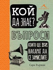 Въпроси, които ще ви накарат да се замислите. ... "Кой да знае?" е забавен гид в света на познанието, в който ще откриете над 130 въпроса, формулирани така, че да провокират вашата любознателност. А отговорите не само ще ви информират, но и ще ви изненадат. Отделните раздели покриват широк спектър в областите - "Време и климат", "Здраве и медицина", "Животни и растения", "Древна история", "Храна и напитки", "Литература", "География", "Химия", "Кино и театър" и "Космически пътувания". Всяка от главите завършва с ... | |||||||
