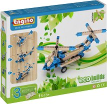 Точно съвпадение: Хеликоптер Близки съвпадения: вертолети, вертолет Колекцията от превозни средства на вашия малчуган, никога не е достатъчно голяма и винаги има място за още някое ново попълнение, нали? Е, от "Engino" ви предлагат решение на проблема! Конструкторът от серията "Eco Builds" дава възможност на детето да си сглоби не един, а цели 3 модела самолети. Той се състои от 121 елемента и картинни инструкции, с помощта на които малчуганът ще може да си сглоби военен хеликоптер с две перки, който след това да "трансформира" във военен вертолет "Ми - 24" или хеликоптер с шейна. Освен това една част от компонентите в комплекта са изработени от ... | |||||||