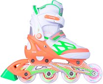 Близки съвпадения: обувка, обувката Точно съвпадение: Колела Близки съвпадения: колелата Детските ролери "Action Joly" от "inSPORTline" са подходящи за начинаещи. Обувката е изработена от твърда пластмаса с удобна вътрешна подплата "Comfort Fit". Закопчава се комбинирано - с връзки, велкро лента и щраймер. На дясната обувка има спирачка, която може да се подменя с нова, когато се изтърка. За да се забавляват повече децата, колелата разполагат с LED светлини, които се задействат при въртене. Обувката е изработена от пластмаса, като разполага със система "Safety Ankle", която поддържа глезена в правилно положение и го държи стабилно, което осигурява по-голям контрол над ... |