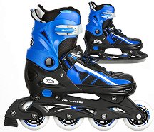 Точно съвпадение: обувки Близки съвпадения: обувка, обувката "Lumine" са ролери и кънки за лед две в едно, за зима и лято, с патентована система за регулиране на размера, подходящи както за деца така и за възрастни. Крачетата на децата растат толкова бързо, "Worker" мислят за това и практично са направили 3 модела, всеки от които покрива диапазона от три размера: XS (29-32), S (33-36), M (37-40) и L (40-43). Уголемяването или намаляването на размера става лесно и без инструменти посредством натискането на синия бутон отстрани на обувката. Зимното острие е право без зъбци, подходящо за хокей. Снабдено е с протектор за по-голяма безопасност. Закрепено е към ... | |||||||