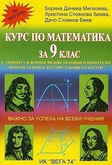 С теорията и всички видове основни и конкурсни решени задачи и тестове, давани на матури. Важно за успеха на всеки ученик! ... Предназначението на учебното помагало "Курс по математика за 9. клас" е да помогне на учениците за постигане на отлични резултати по математика в училище и при явяване на приемни изпити, състезания и матури. Теорията е затвърдена чрез степенувани по сложност подробно решени задачи от всички основни видове, които имат обучаващо значение и са онагледени с множество графики и чертежи. Подробно решените задачи от всички видове, давани на конкурсни изпити, са предвидени за часовете по ... | |||||||