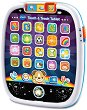 Малкият човек ще се впусне в музикални приключения с таблета от Vtech. Той разполага с 9 силиконови бутона и 4 клавиша с животни. Детето ще се запознае със зебра, жираф, хипопотам и тигър. Клавишите са изработени от плат и издават звук на ноти от пиано. Освен това описват животните с думи и звуци. Играчката включва 5 песни и 18 мелодии като "Pat a cake", "Glow worm", "Teddy bears' picnic" и други. Таблетът има бутон за включване и изключване на звука. Светлините и мелодиите се изключват автоматично след 40 секунди. Таблетът има дръжка с 2 мъниста и е удобен за носене от малките ръчички. ... |