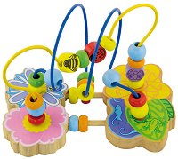 Това е един от най-сложните модели мини-лабиринти, предлагани от “ Andreu toys ”. Играчката представлява дървена поставка с нарисувана на нея звездичка, към която са прикрепени две затворени метални тръбички – S-образно и спираловидно извити. На всяка от тях са нанизани по шест разноцветни топчета. Целта на играта е детето да се научи все по-бързо и по-ловко да прекарва отделните топчета от единия до другия край на тръбичките. Играчката е изключително подходяща за деца в предучилищна, както и за по-големи, при които се наблюдават затруднения в координацията и движенията на ръцете. Развива съобразителността, търпението, ... |