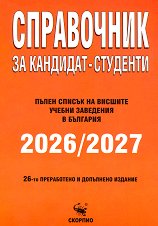 26 -то преработено и допълнено издание. ... Пълен списък на висшите учебни заведения в България. Справочникът за кандидат-студенти 2026 / 2027 г. е изключително ценно издание - дава актуална информация относно кандидатстването във всички държавни и частни университети на територията на България. Данните са подбрани от справочниците на отделните ВУЗ-ове и са ситематизирани. Има много телефони, адреси, сайтове и имейли, които кандидат-студентите да ползват при кандидатстването си. Хартиеният справочник е удобен - за справки, за отбелязване и търсене на бърза информаиця. ... |