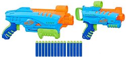 Децата ще се впуснат в смели приключения с бластера от Nerf. В комплекта са включени мишена и 4 стрелички, изработени от пяна. Бластерът има 2 дула за изстрелване, а при натискане на спусъка изстрелва 1 стрела. За да се изстреля и другата стрела, малчуганите трябва да заредят и да дръпнат спусъка отново. Дайте им шанс да се забавляват и да развият своето въображение, докато подобряват своите рефлекси и бързина. Важно: Препоръчително е да се използват предпазни очила Nerf при игра с бластера. ... |