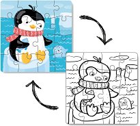 Двулицевият пъзел от Dodo е с изображение на пингвинче. От едната страна е пъзелът с цветно изображение, а от другата е неоцветен, което дава възможност на детето да развива своите художествени способности. За да оцветите пъзела ще са ви необходими цветни моливи или пастели. ... |