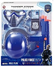 В комплекта за игра са събрани най-необходимите полицейски принадлежности, с които вашето дете ще влезе в ролята на истински полицай. Той съдържа значка, шапка, шлем, пистолет, ключове, свирка и белезници. ... |