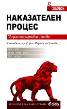 Сборникът е актуализиран към 01.12.2024 г. Съставител: Проф. д-р Маргарита Чинова. ... Сборникът съдържа: Наказателно-процесуален кодекс Закон за специалните разузнавателни средства Закон за екстрадицията и Европейската заповед за арест Закон за Европейската заповед за защита Закон за Европейската заповед за разследване Закон за правната помощ Закон за отговорността на държавата и общините за вреди "Текстовете са анотирани, чрез посочване и на отменената или изменена редакция на съответните разпоредби, при това не под линия, а непосредстве­но под съответния текст, със забележка - предиш­на редакция. ...