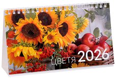 Календарът за 2026 г. е дванадесетлистов и съдържа красиви изображения на цветя. Съдържа: национални и международни празници; лунен календар; зодии; имени дни; страница за лични, семейни или фирмени празници. Размери: в сгънато състояние: 30 x 30 cm. в разгънато състояние: 60 x 30 cm. ... |
