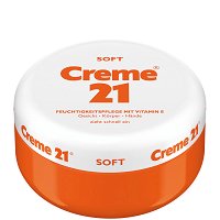 Кремът от Creme 21 осигурява интензивна хидратираща грижа за кожата на лицето, ръцете и тялото. Формулата му е обогатена с витамин E, който притежава овлажняващи, подмладяващи, регенериращи и противовъзпалителни свойства. Той се бори с признаците на стареене и предпазва кожата от вредното действие на свободните радикали, благодарение на мощния си антиоксидантен ефект. Вложени са още глицерин, провитамин В5 и масло от слънчоглед, които дълбоко хидратират кожата и възстановяват нейната еластичност. Кремообразната текстура се абсорбира лесно в кожата и я оставя копринено мека, гладка и еластична. Кремът притежава ...