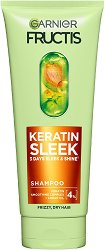 Специалистите на Garnier разработват шампоан, специално създаден за нуждите на сухата и непокорна коса. Той почиства нежно и изглажда косъма, възвръщайки неговата мекота, блясък и еластичност. Благодарение на усъвършенстваната anti-frizz технология, шампоанът контролира неприятните хвърчащи косъмчета и придава на косата дълготраен, диамантен блясък до 3 дни*. Формулата е обогатена с 4% изглаждащ комплекс, растителен кератин и арганово масло. Комбинацията от тези активни съставки заздравява, изглажда и създава защитен слой около косъма, който го предпазва от влага и външни агресори, като същевременно прави косата ... |