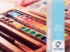 Скицникът от серията Van Gogh на Royal Talens е подходящ за рисуване с акварелни бои. Хартията е изработена от 100% целулоза, без съдържание на киселинна. Има фина текстура и студено пресовани листове. Подлепен е от всяка страна против деформация по време на мокрене. Характеристики: размери: 30 x 40 cm брой листове: 75 плътност: 300 g/m 2 повърхност: фина, студена преса 100% целулозна хартия, без киселинна цвят на хартията: бял употреба: с мокри техники вид: подлепен по четирите страни корица: мека ... |