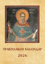 Календарът за 2026 г. е дванадесетлистов и съдържа изображения на различна икона за всеки месец от годината. Православният календар е вертикално ориентиран и се отваря посредством спирала, на която е нанизана метална лента, служеща за лесно закачане. Съдържа: именни дни; по-важните църковни празници; лунните фази. Размери на календара: 29 x 39 cm. ... |