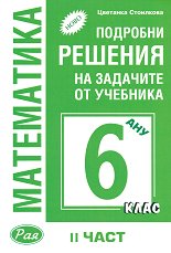 Това учебно пособие съдържа подробно решени всички задачи по математика от учебника Математика за 6 клас - 2 част по учебната програма 2023 / 2024 година с авторски колектив - Теодоси Витанов, Лилия Дилкина, Иванка Джонджорова, Петя Тодорова, Нина Иванова. То има за задача да подпомогне учениците от 6. клас в овладяването та задължителния учебен материал. Също така сборникът може да послужи при подготовката на учениците за класни, контролни работи и за текущите изпитвания. Настоящото издание е съвместимо с учебната програма за 2025/2026 г. Ако имате нужда от подвързия за различни формати учебници, тетрадки и ... |