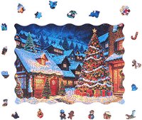 Красивият дървен пъзел от Milliwood поднесен в стилна дървена кутия ще внесе уют и празнично настроение във всеки дом. Този пъзел пресъздава магията на Коледа чрез впечатляваща зимна сцена. В центъра се издига висока, богато украсена коледна елха, която излъчва блясък и празничен чар. Къщите около нея сияят с топла светлина, а отражението ѝ в снега създава усещането, че целият град е изпълнен с живот и коледна магия. Сред елементите са скрити специални части във формата на коледни символи, които правят подреждането още по-интересно и допълват празничната атмосфера. В кутията е включен и лист самозалепващо фолио, с ... |