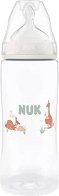 Бебешкото шише за хранене Temperature Control е част от серията First Choice на NUK. То се отличава с това, че има интегрирана термосензорна скала, която показва температурата на храната и ви дава допълнителна увереност, че млякото е с правилната температура преди да го дадете на бебето. Термосензорната скала променя цвета си в бяло, когато храната е гореща, в светлосиньо при 37°C и в тъмносиньо, когато храната е прекалено студена. Шишето е с широко гърло за лесно пълнене и почистване и се предлага в комплект с мек и нежен силиконов биберон - размер 2 (M), подходящ за мляко и за бебета над 3 месеца. То е с дизайн, ... |