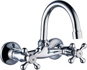 Смесителят Retro R на Cascada е двуръкохватков Ретро модел за кухня. Предназначен е за стенен монтаж. Изработен е от месинг и включва 2 розетки с ексцентрик. ... |